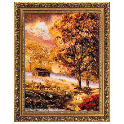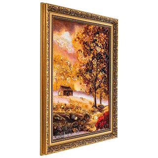 Картина янтарная «Осенний пейзаж. Храм» 60х40 см