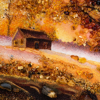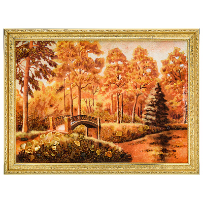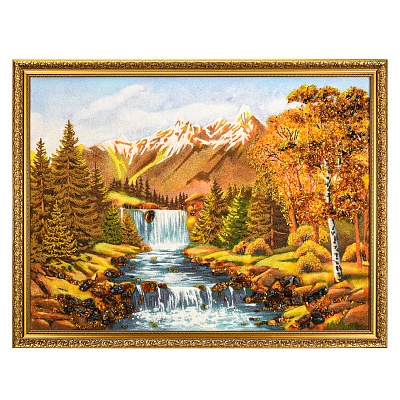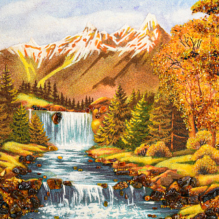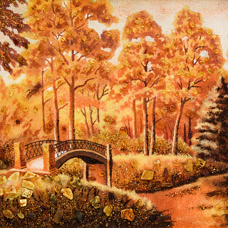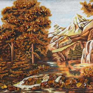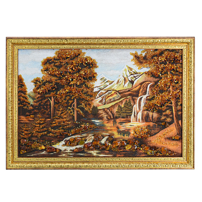 Картина янтарная «Пейзаж. Солнечный день на речке» 30х40 см