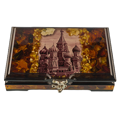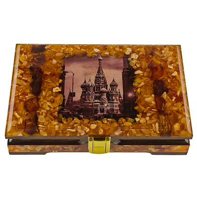 Картина янтарная в багете «Храм Василия Блаженного» 30х40 см