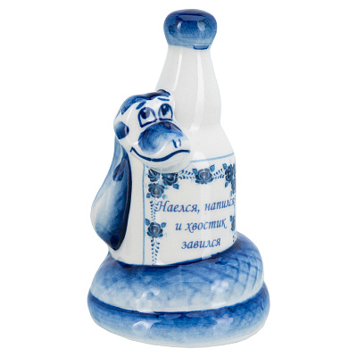 Змея Символ 2025 года. Статуэтка «Змея с бутылкой». Гжель