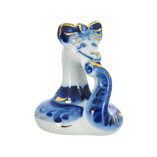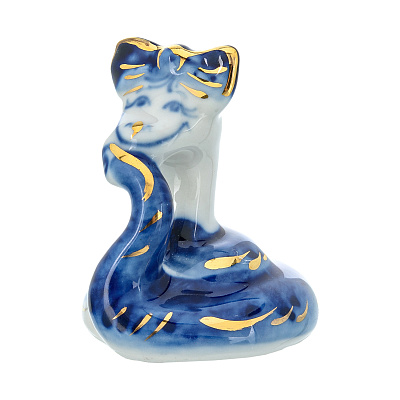 Змея Символ года 2025. Скульптура «Змейка» . Гжель в золоте