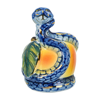 Змея Символ года 2025. Скульптура «Змей-искуситель» . Гжель в цвете