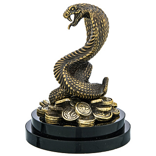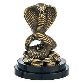 Змея Символ 2025 года. Сувенир из бронзы и янтаря «Королевская кобра»