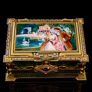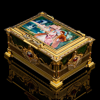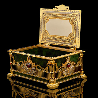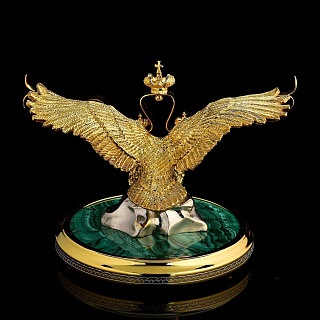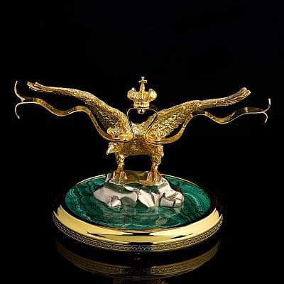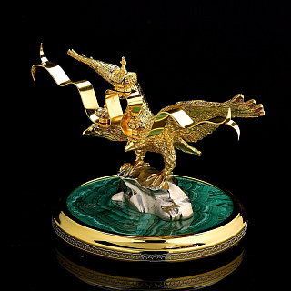 Часы настольные из малахита и латуни с позолотой «Г. Победоносец». Златоуст