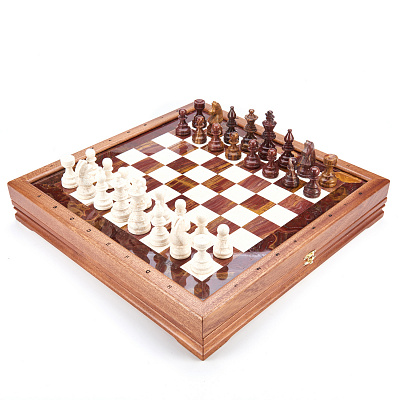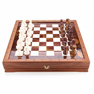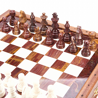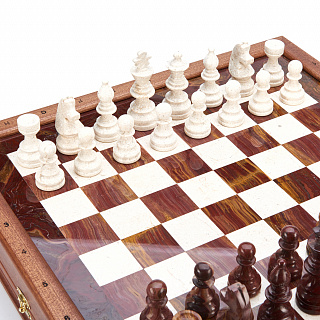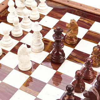 Шахматы деревянные с полем и фигурами из мрамора «Американские» 43х43 см