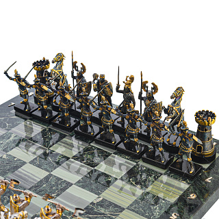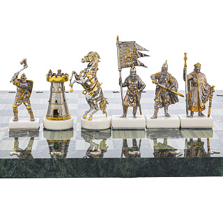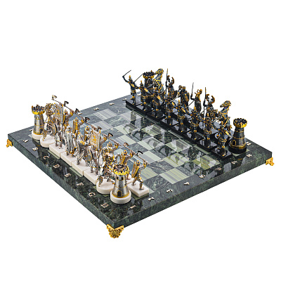 Шахматы с полем из камня и фигурами из серебра «Сражение» 38х38 см