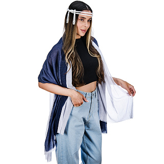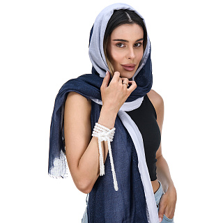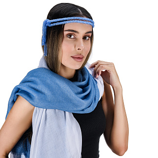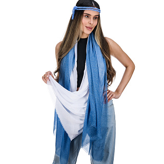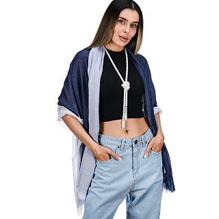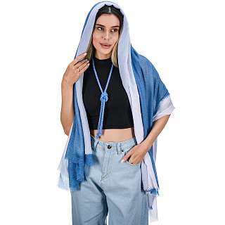 Набор парных палантинов с бусами-жгутом «Дуэт». Бело-синий