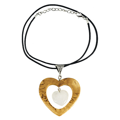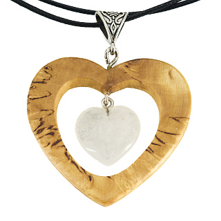 Кулон из карельской березы и горного хрусталя «Два сердца»