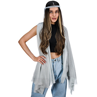 Набор парных палантинов с бусами-жгутом «Дуэт». Серебристо-черный
