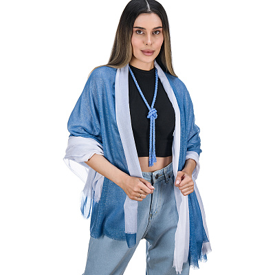 Набор парных палантинов с бусами-жгутом «Дуэт». Бело-голубой