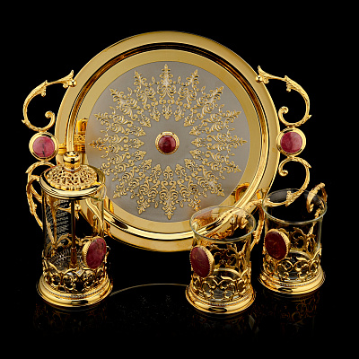 Чайный набор с френч-прессом и подстаканниками. Златоуст
