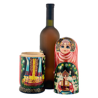 Футляр для бутылки — мини бар удачный подарок руководителю, ценящему хороший крепкий алкоголь, концептуальный, индивидуальный подход во всем. Украшение интерьера, место для хранения спиртного (зачастую, и стопок) чудесный домашний бар «Хохлома», «Купец», «Царевна лягушка», «Храм Василия Блаженного» можно купить в «Руси Великой». Авторские работы из натурального дерева, расписанные лучшими художниками страны в разных техниках, отличные корпоративные подарки. Дизайн изделий напоминает матрешек: яркий орнамент, лаковый блеск. Оригинальные футляры украсят застолья.