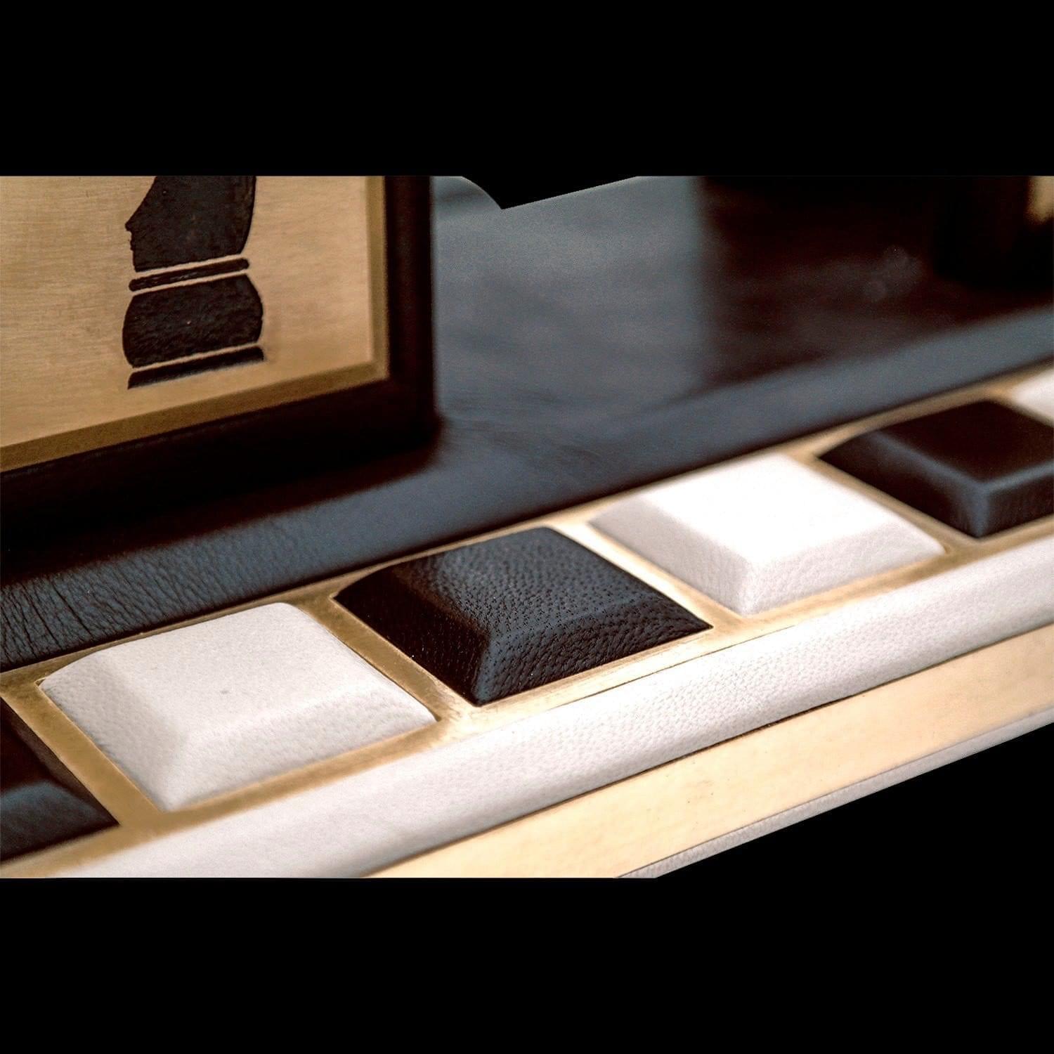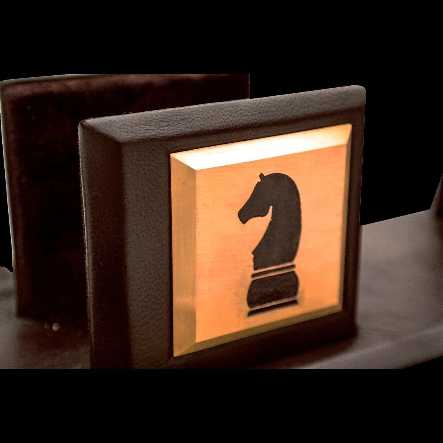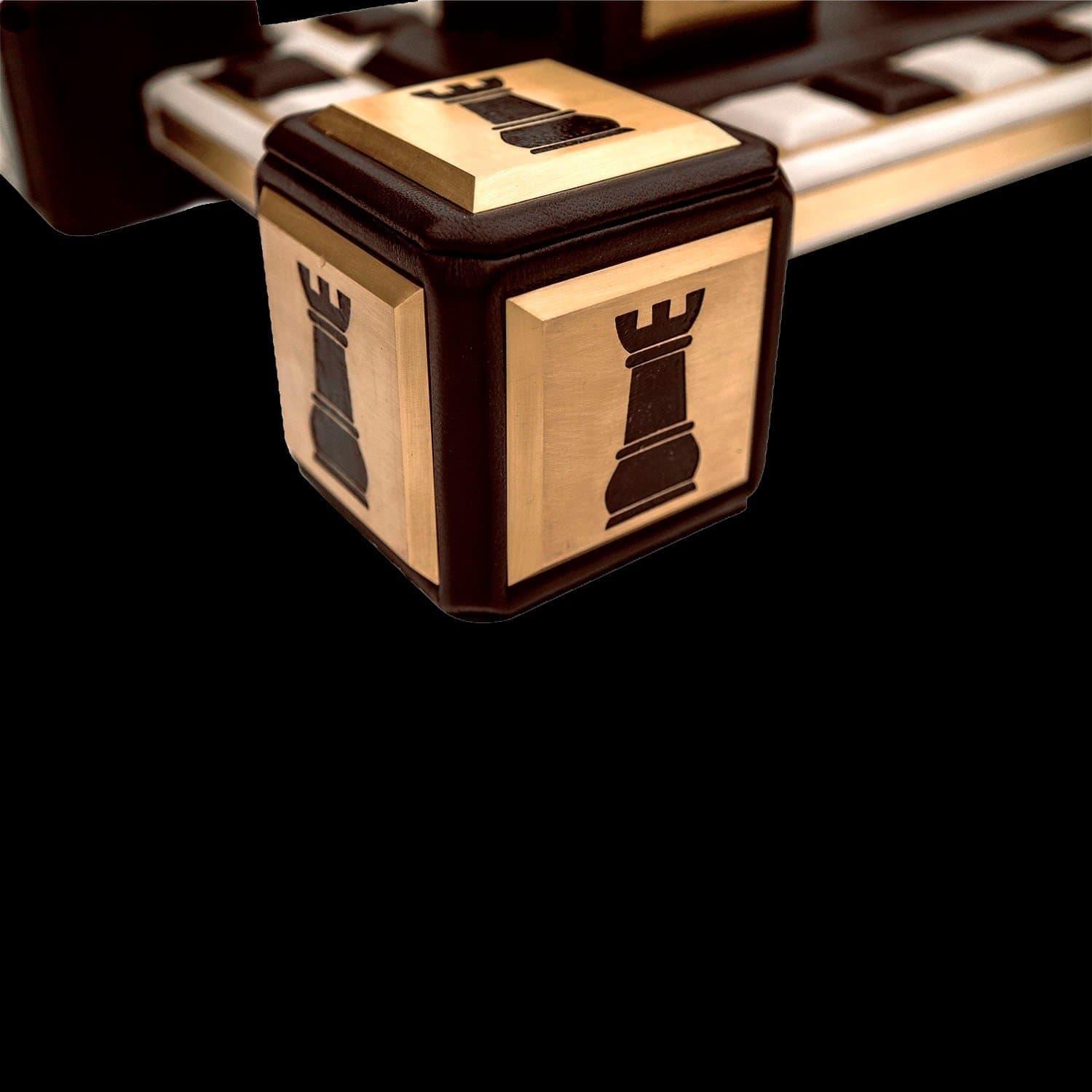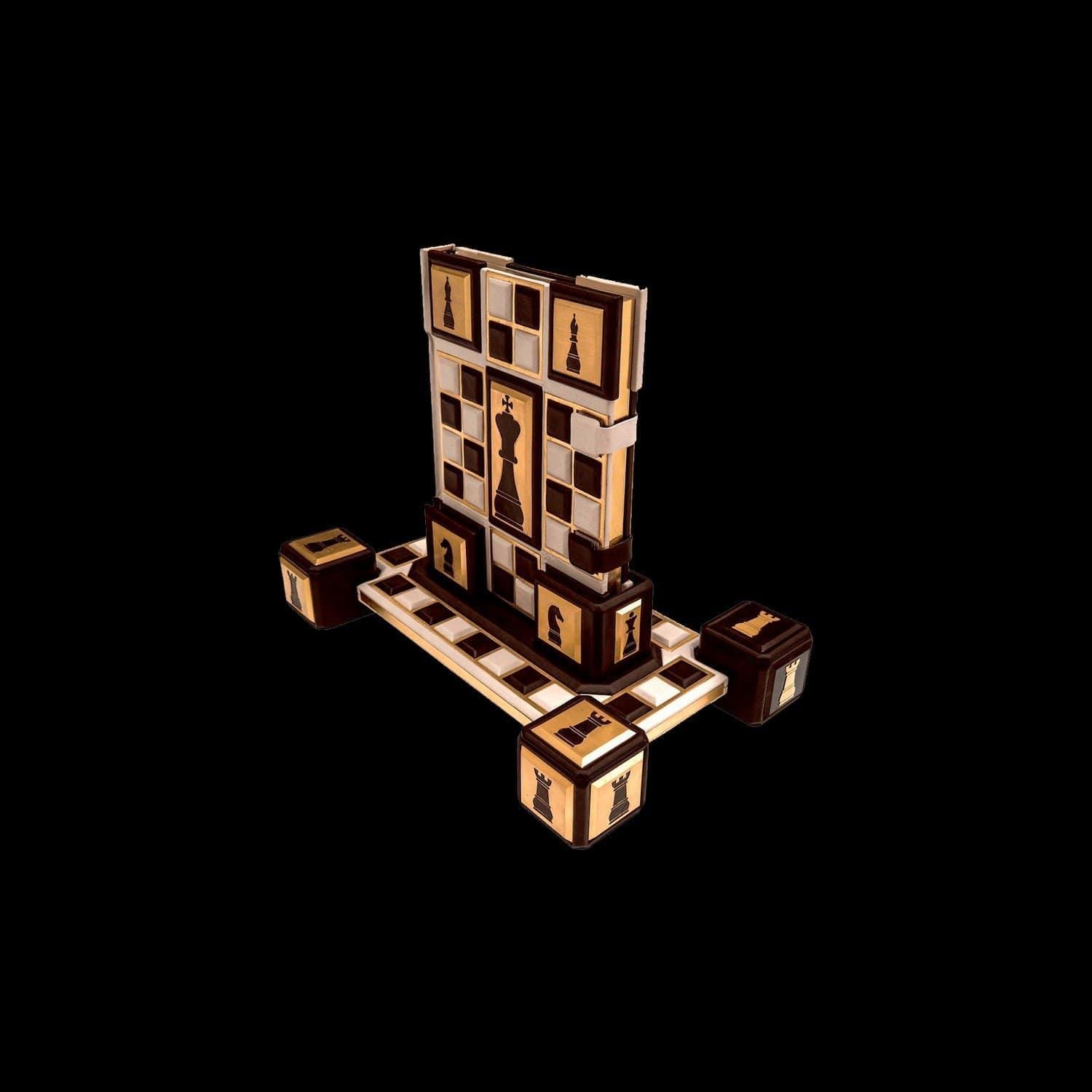 Книга предлагает обобщение современных исследований происхождения и распространения королевской игры, представляет основные вехи ее развития. В ней рассказано об индийской и арабской игре, о первых профессиональных шахматистах, о сути игры и роли каждой фигуры в ней, о национальных школах, о легендарных мастерах и их партиях. Оформление: Составной переплет «Брадель», ручной работы, выполнен из комбинации натуральных кож (кожа теленка «Robbat Parle», кожа «Marrone») производства итальянской кожевенной фабрики «Carisma». Двухуровневая обложка книги и подставка оформлена композицией художественного травления латуни. Составной форзац с фотопечатью, на кожаной слизуре. Кожаный каптал и шелковая лента-ляссе. Обрез книги вручную полирован и позолочен. Характеристики: Сертификат. Бархатный чехол. Количество страниц – 208 стр. (мелованная бумага, цветная печать, иллюстрации). Формат книги – 255х315х50 мм. Вес книги – 4,2 кг. Формат комплекта - 450х380х285 мм. Вес комплекта – 9,2 кг.