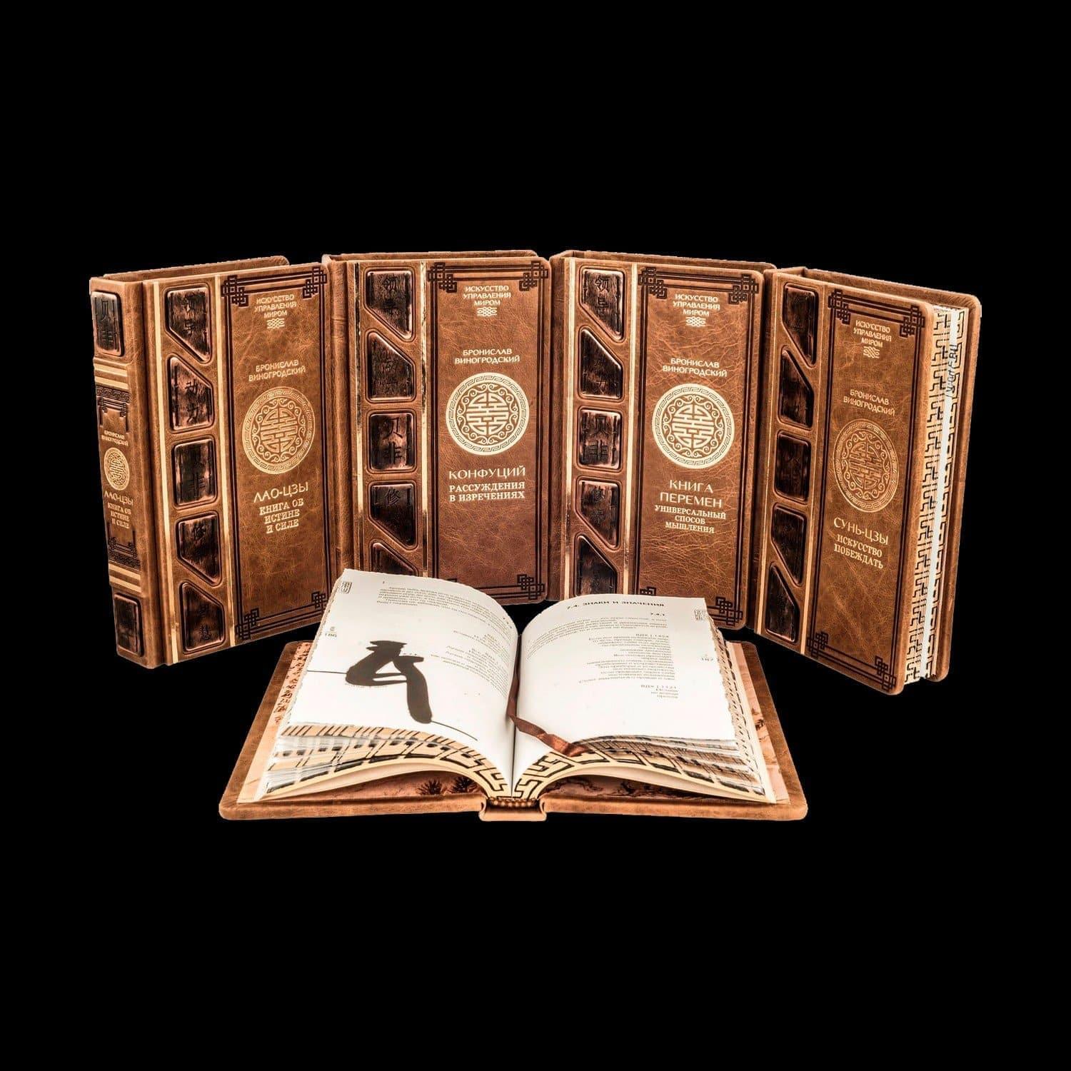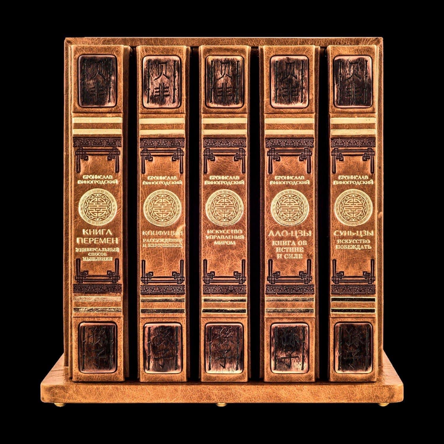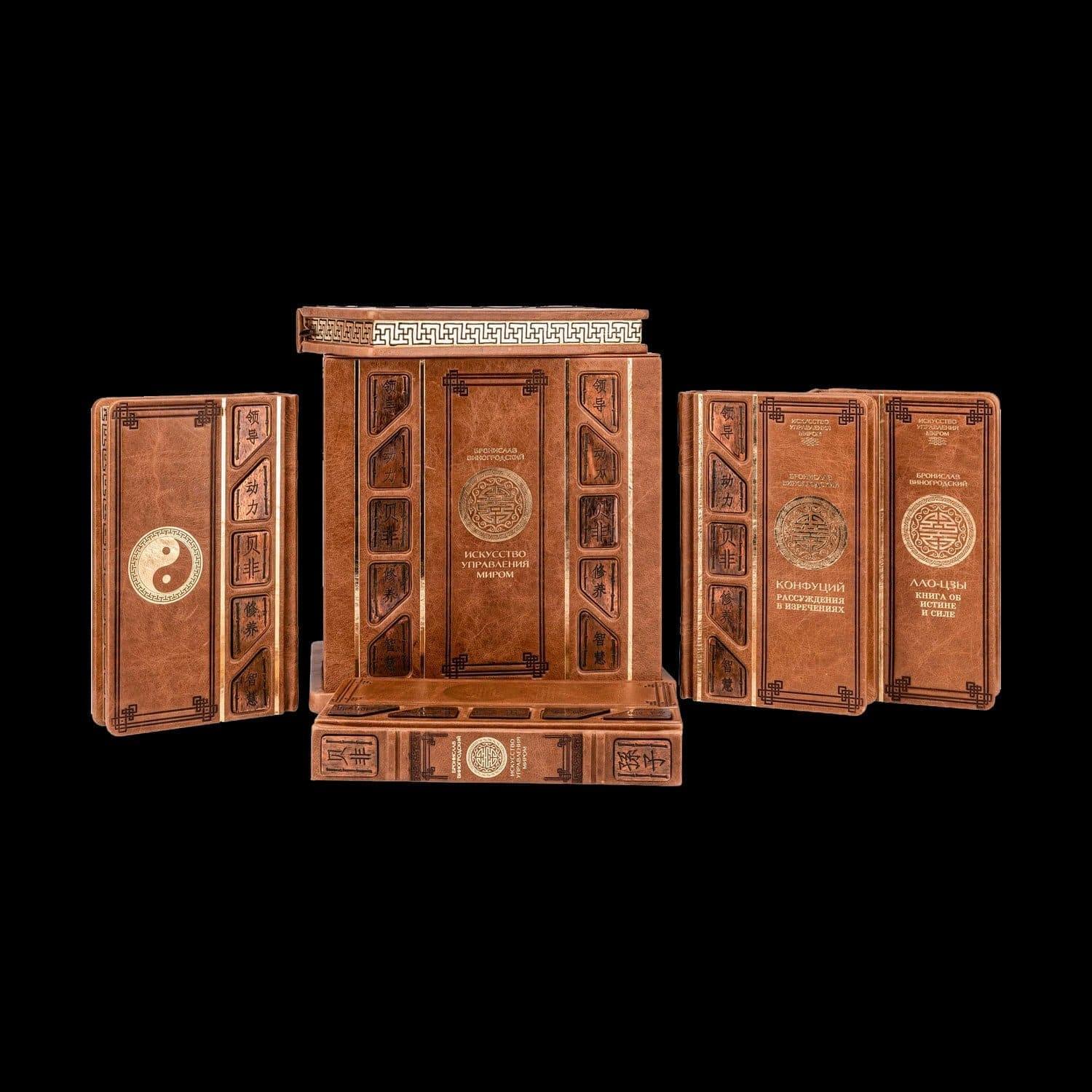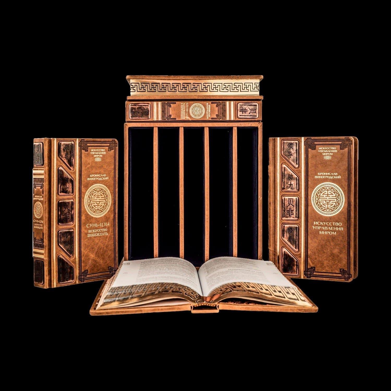 В собрании книг "Искусство управления миром" заключен тысячелетний опыт китайских мудрецов и правителей. Это собрание, в первую очередь, предназначено для людей, которые хотят управлять своим миром, поскольку никаким другим миром управлять невозможно. Чтобы управлять, нужно иметь представление о предмете управления. Но как создать правильное представление о собственном мире, если нет правильных представлений о самом себе? Согласно философии Лао-Цзы, человек, который управляет своими состояниями, своими действия – управляет и обстоятельствами. В этом и заключаются три основных аспекта человеческой личности, которые в даосизме сформулированы следующим образом: мастер творческих состояний, мастер осознанных действий и мастер управляемых совпадений. Об этой и других концепциях идет речь в книгах из собрания «Искусство управления миром». В собрание вошли: 1. Искусство управления миром 2. Конфуций «Рассуждения в изречениях» 3. Лао-Цзы «Книга об истине и силе» 4. Сунь-Цзы «Искусство побеждать» 5. Книга перемен – «Универсальный способ мышления» Оформление: Составной переплет «Брадель», ручной работы, выполнен из эксклюзивной кожи «Vetro marrone vernice» производства итальянской фабрики «Carisma». Обложки книг и подарочный пенал оформлены многоуровневым тиснением: глубоким блинтовым и рельефным золотым, а также медными элементами с чеканкой китайских иероглифов. Форзацы книг выполнены из холста с цветной печатью репродукций древних восточных полотен. Обрезы книг вручную позолочены и декорированы глубокой гравировкой. Все пять томов заключены в роскошный пенал, обшитый кожей, оформленный в едином стиле с книжными обложками. Характеристики: Персональный сертификат с индивидуальным текстом поздравления. Бархатный мешочек. Деревянный кейс. Формат комплекта – 270х280х185 мм. Формат книги – 158х247х45 мм. Общий вес комплекта – 6,9 кг. Вес книги – 1,1 кг. Готовая книга может отличаться от представленной на фото. Страниц в книге - 214