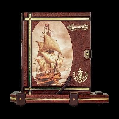 Подарочная книга на подставке «Корабли». Кожаный переплёт