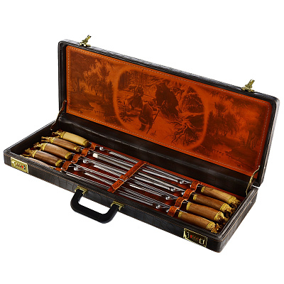 Шашлычный набор с мангалом «Точеная ручка» в кожаном чехле