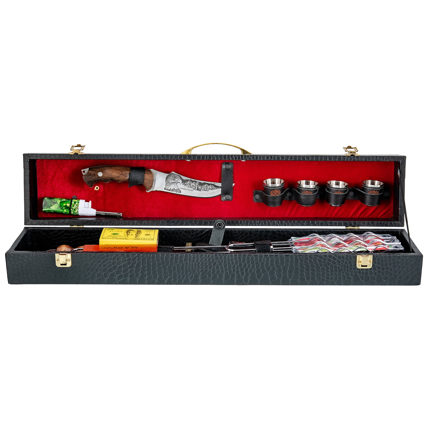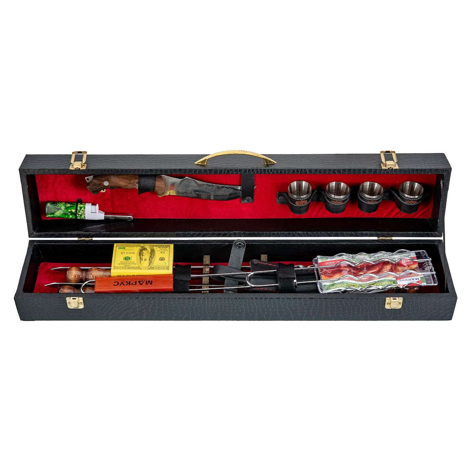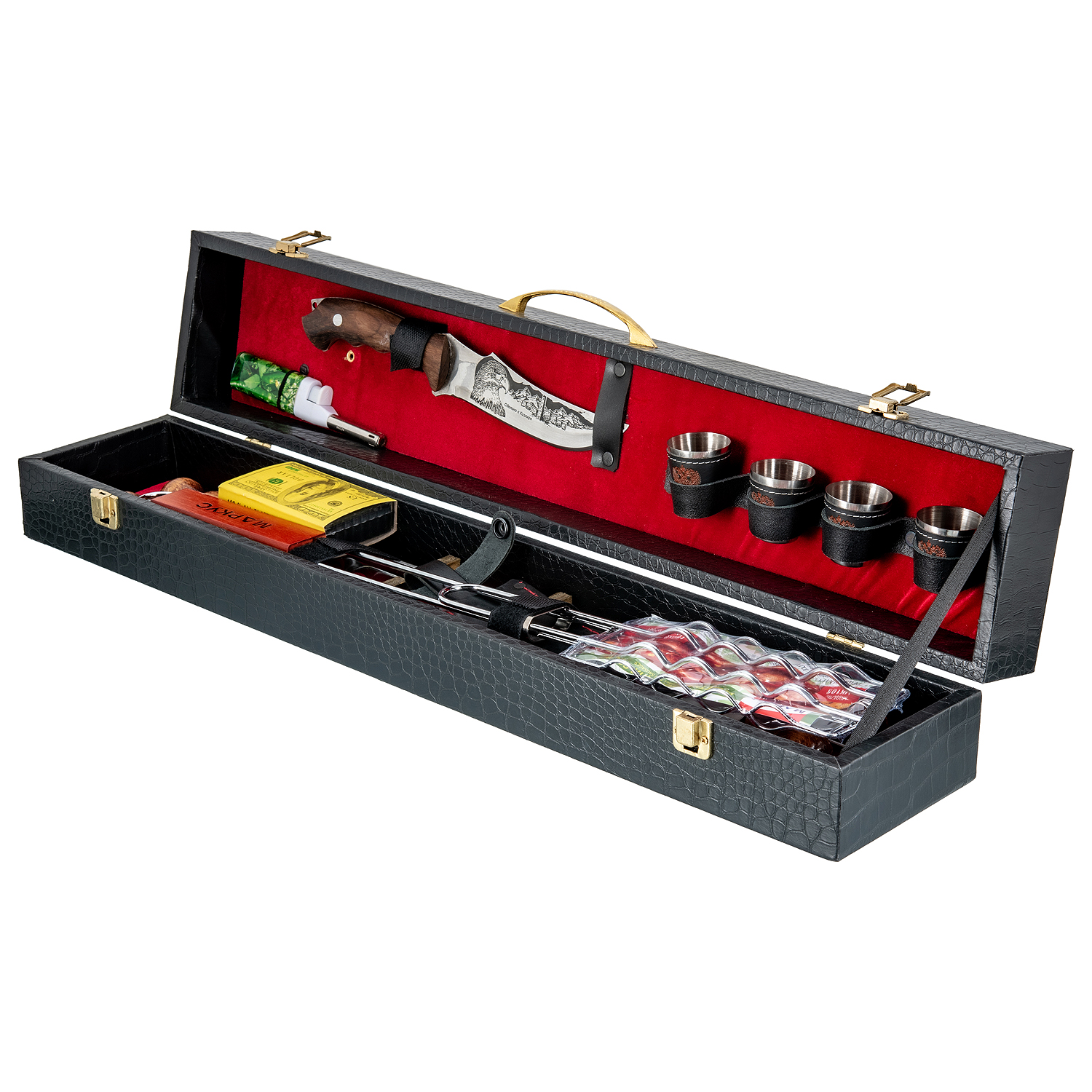 Шашлычный набор для пикника в кожаном футляре.