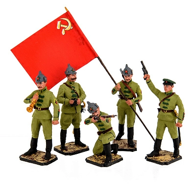 Оловянная миниатюра, набор солдатиков «Буденовцы». 5 фигур