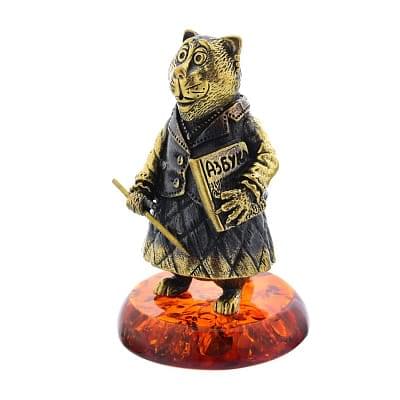 Колокольчик с янтарем «Кошка Завуч» (коньячный)