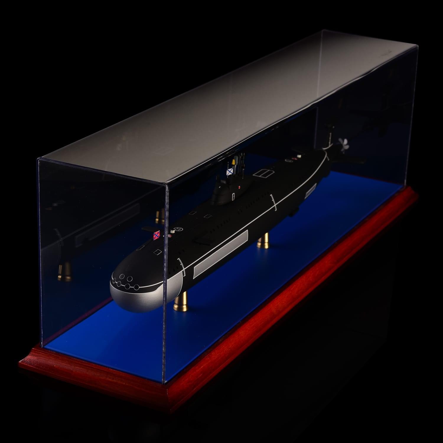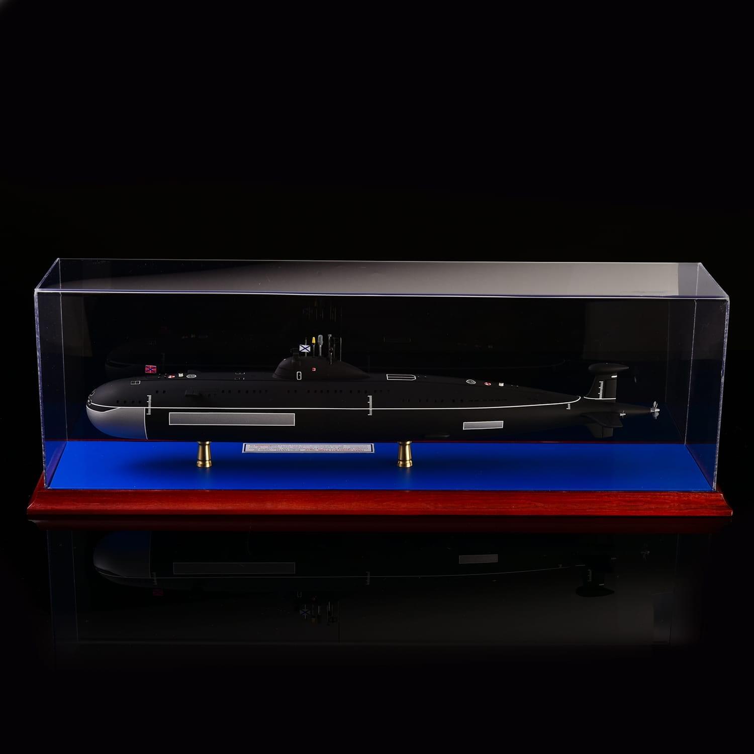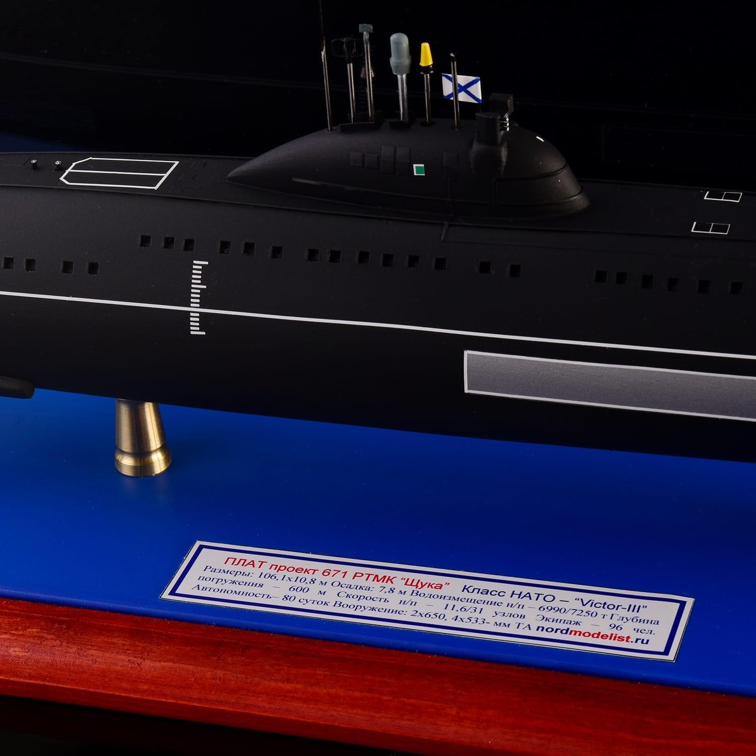 Макет подводной лодки 671РТМ(К) «Щука» из серии советских торпедных атомных подводных лодок второго поколения. Разработана была под руководством главного конструктора Г.Н. Чернышева. На верфях Комсомольска-на-Амуре и Ленинграда были построены: по проекту 671 РТМ - 21 корабль, по проекту 671РТМК - 5 кораблей. Они отличались небольшим уровнем внешнего шума подобно американским атомным субмаринам типа «Лос-Анджелес».