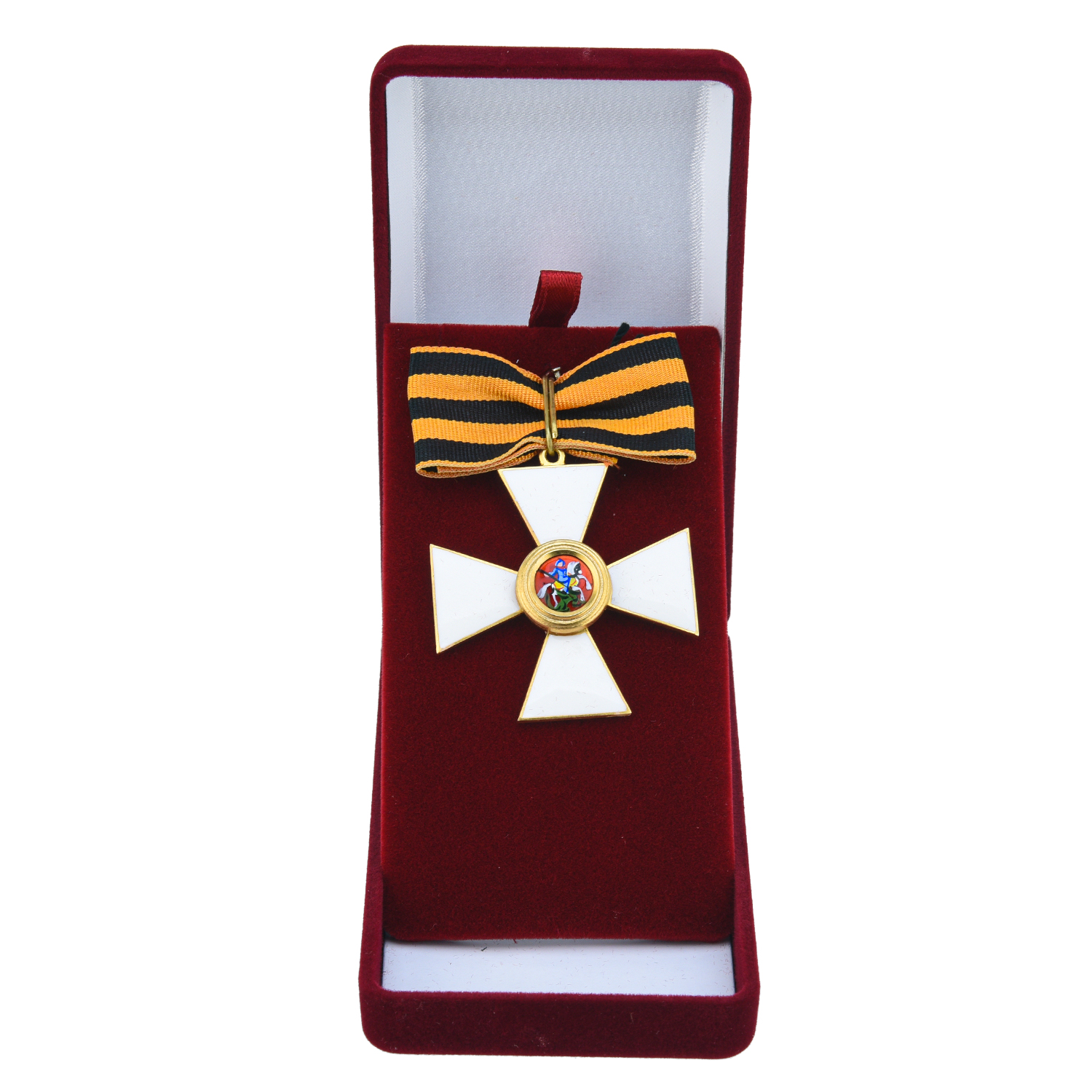 Императорский Военный орден Святого Великомученика и Победоносца Георгия (Орден Святого Георгия) считается высшей военной наградой Российской империи. Учрежден императрицей Екатериной II в 1769 году в честь святого Георгия для отличия офицеров за заслуги на поле боя и выслугу в воинских чинах. Имел четыре степени отличия. Награждено свыше 10 тысяч человек. Первым кавалером ордена, не считая Екатерины II, стал в 1769 году подполковник Федор Иванович Фабрициан. С 1917 года 4-й степени ордена удостаивались солдаты и матросы, исполнявшие в бою обязанности офицера. Орденскую ленту украшали серебряной лавровой ветвью. В Советской России орден упразднили после Октябрьской революции 1917 года.