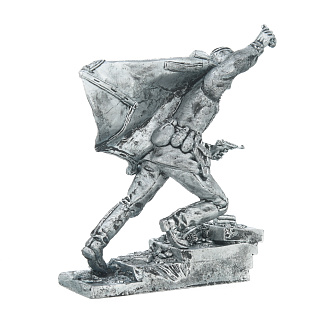 Образ представителя сухопутных войск в воинской экипировке представлен российским художником по металлу в виде статичной скульптуры на постаменте. Эта статуэтка является образцом старинного промысла - бронзового литья. Предварительный эскиз для нее выполнен автором с большим вниманием к деталям. Статуэтка тонирована эффектной позолотой и патиной с целью придания объемов изображению.