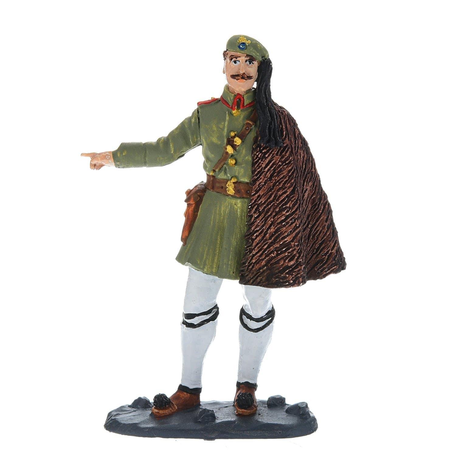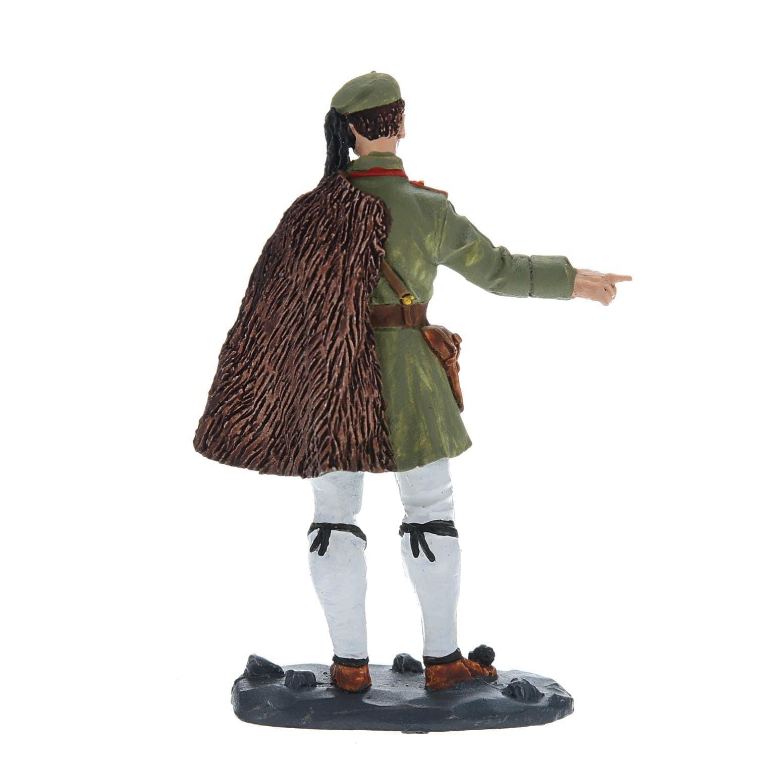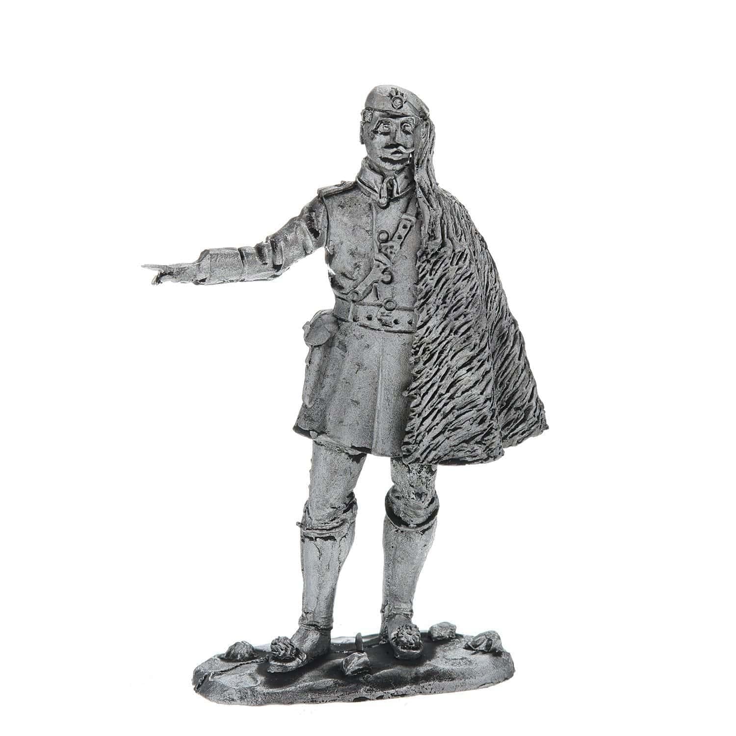 Художник по металлу уточнил детали исторического военного костюма и черты лица военного и представил миниатюру в двух цветовых вариантах - расписанную красками и в серебристом оттенке олова. Авторская работа художника по металлу, оловянная миниатюра "Греческий офицер в бурке" - это оригинальный вариант тематического подарка для мужчины на общий или личный, в том числе профессиональный праздник.