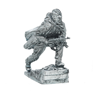 Художник по металлу уточнил детали военного костюма и черты лица пластуна и представил миниатюру сразу в двух цветовых вариантах - в ярких красках и минималистичном стиле, покрыв статуэтку серебристой краской. Авторская работа художника по металлу, оловянная миниатюра "Казак, пластун" - это оригинальный подарок для защитника Отечества на общий или личный, в том числе профессиональный праздник.
