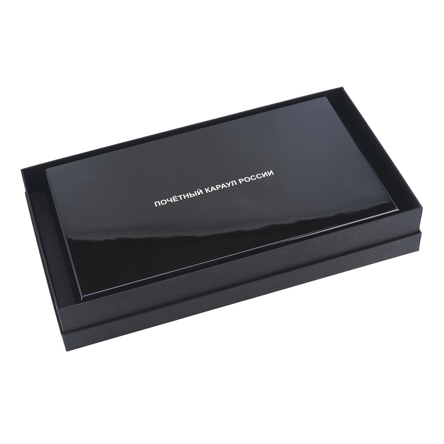 В подарочный набор входит книга известных военных историков Максима Ветрова и Владимира Газетова «Кремлевские драбанты». Книга раскрывает многовековые традиции несения почетного караула в Московском Кремле, которые формировались вместе с развитием Российского государства, укреплением его авторитета и могущества. Возникновение и развитие института охраны первых лиц Российского государства рассматривается авторами в контексте становления системы безопасности самого Российского государства, проходившего в