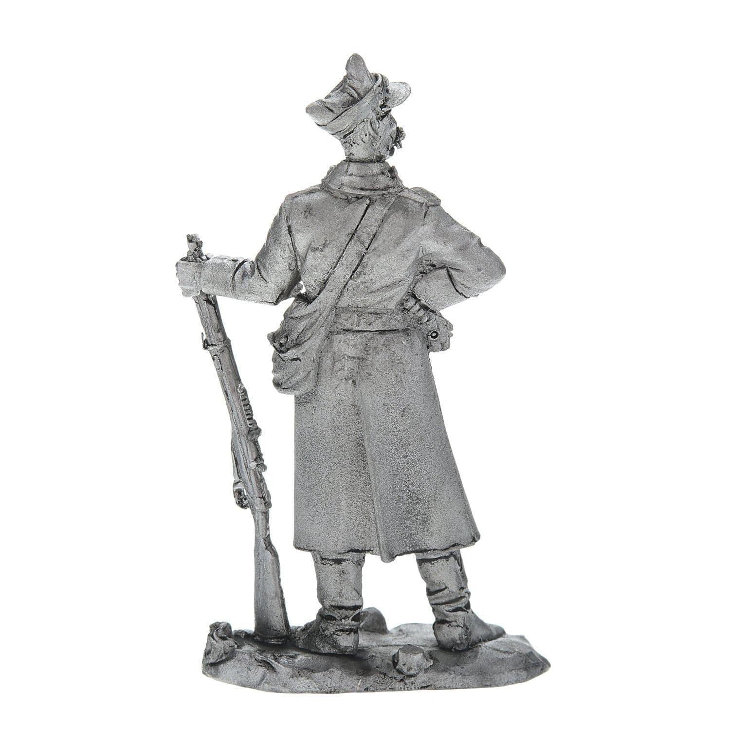 Это авторское изделие для интерьера отлито из олова вручную в соответствии с оригинальным авторским эскизом. Оловянная статуэтка румынского рядового солдата с винтовкой создает тематический акцент в интерьере, будет символом исторической памяти и оригинальным подарком для мужчины.