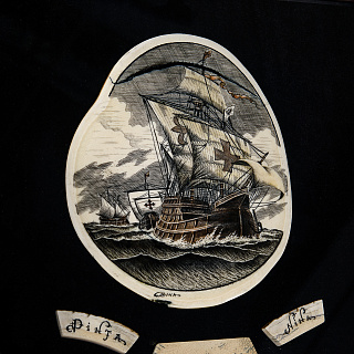 Панно из кости «Санта Мария - флагман каравана Колумба» 33,5 х 33,5 см