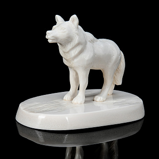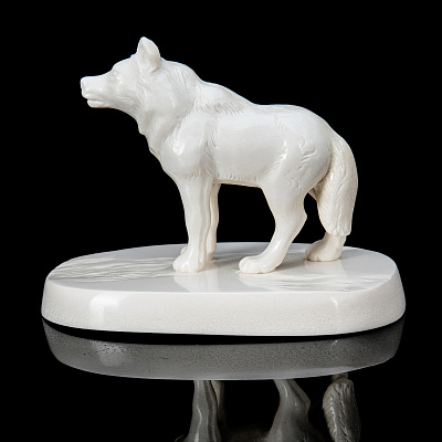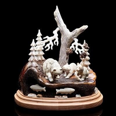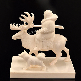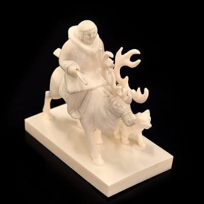 Скульптура из бивня мамонта и рога лося «Хозяин, ты скоро?»