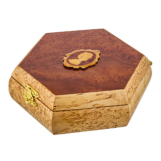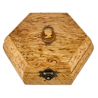 Шкатулка шестигранная из карельской березы «Камея»