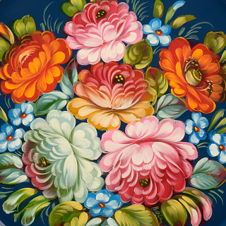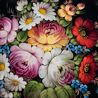 Поднос с авторской росписью «Цветы» 44х44 см