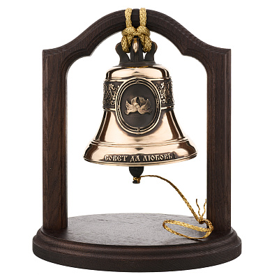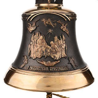 Колокол бронзовый на подставке «С Рождеством Христовым»