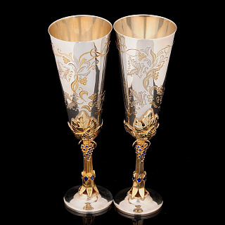 Набор фужеров для вина «Виноградная лоза». Серебро 925°