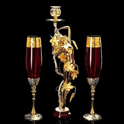 Набор под шампанское «Романтик» (2 бокала, подсвечник) Златоуст
