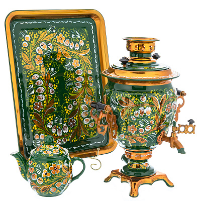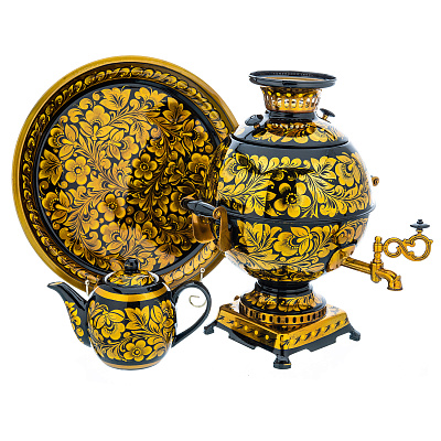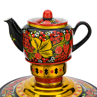 Самовар электрический 3 л с сервизом «Золотая кудрина». Хохлома