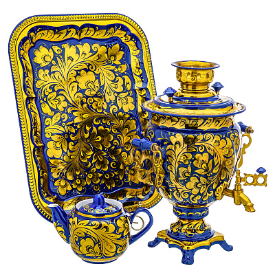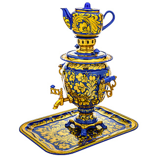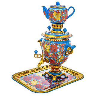 Самовар электрический 1,5 л с сервизом «Васильки». Хохлома