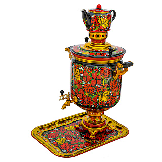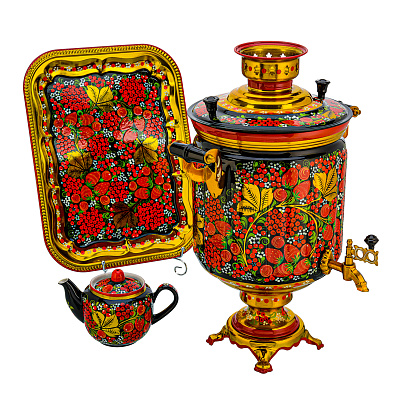 Самовар электрический 5 л с сервизом на 6 персон «Клубника». Хохлома