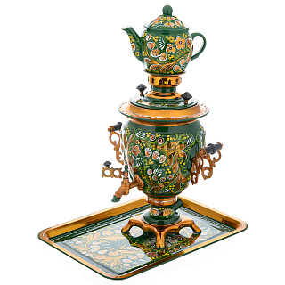 Самовар электрический 1,5 л с сервизом «Ландыш». Хохлома