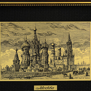 Офорт черно-белый «Старая Москва. Храм Василия Блаженного» 15х19 см