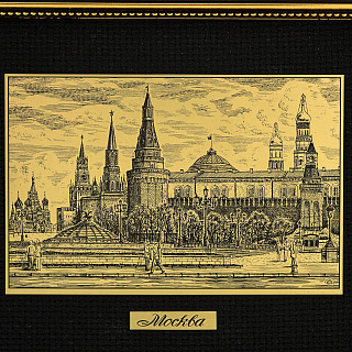 Офорт черно-белый «Кремль. Васильевский спуск» 21х40 см