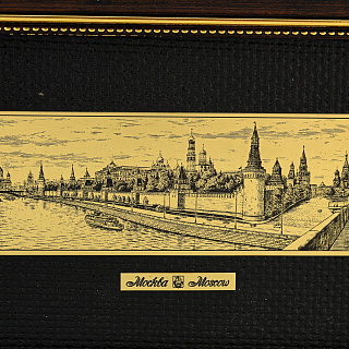 Офорт черно-белый «Вид на Кремль с Большого Москворецкого моста» 27х55 см