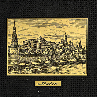Офорт черно-белый «Васильевский спуск. Кремль» 13х22 см