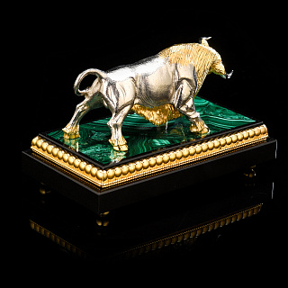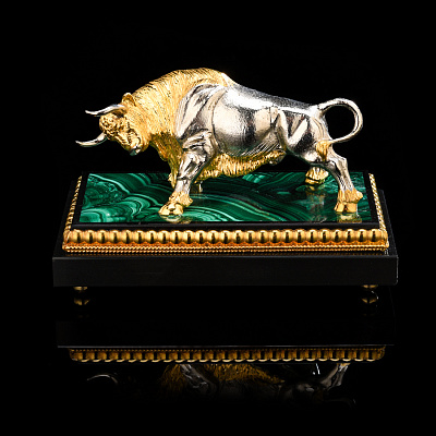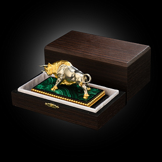 Лошадь Символ 2026 года. Часы настольные из малахита «Конь». Златоуст