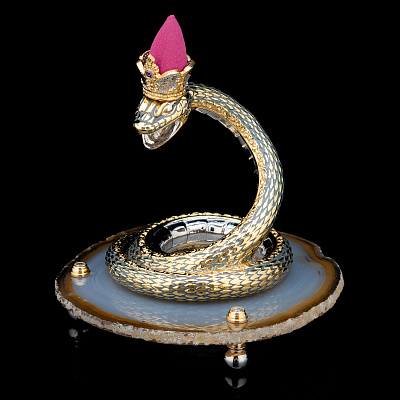 Змея Символ 2025 года. Скульптура из янтаря «Королевская кобра»