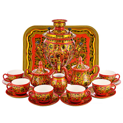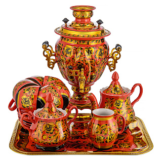 Самовар электрический с сервизом «Кудрина» 3 л. Хохломская роспись