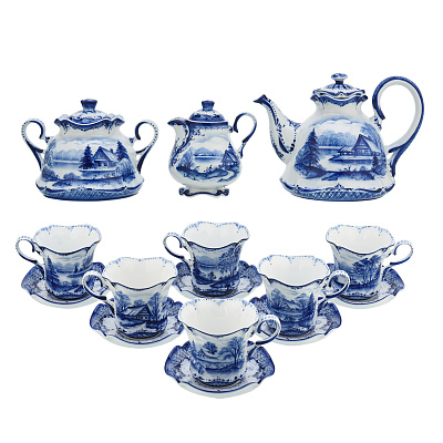 Чайный сервиз на 6 персон «Лето в деревне». Гжель