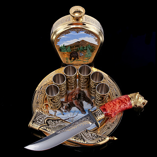 Набор рюмок из позолоченной латуни с эмалью «Собачья жизнь». Златоуст